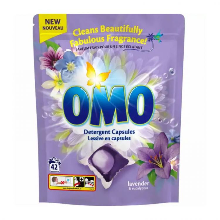 15-30% -Paniontové povrchové činidlá, neiónové povrchovo aktívne látky, mydlo. 5% enzýmov, optických parfumov, fosfonátov, butylfenylmethylpropionu, citronellol, geraniol, hexyl cinnamal, limonene, Linalool.