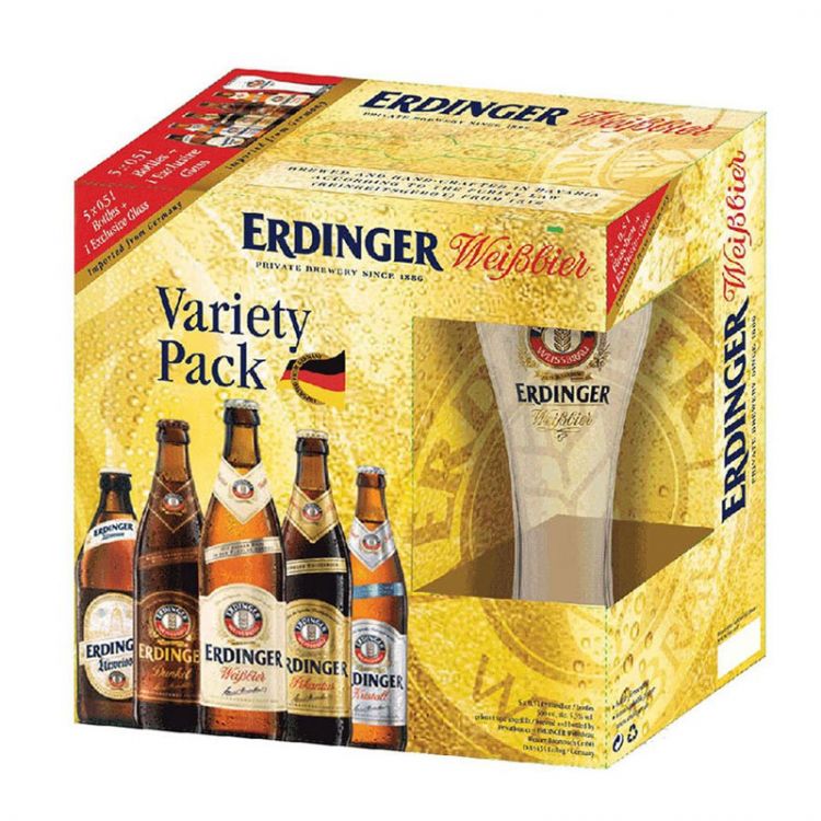 5 najlepších pív od pivovaru ERDINGER s exkluzívnym pohárom v darčekovom balení.