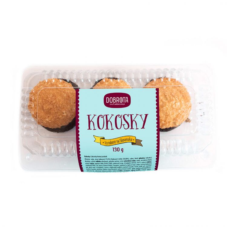 voda, zmes kokosová (19,4%) [kokosové vločky (50,00%), cukor, škrob (pšenica, kukurica), dextróza, sušené mlieko odtučnené, prírodné arómy], zmes [pšeničná múka, cukor, zemiakový škrob, sušené vajcia, kypriace látky (E450, E500), glukózový sirup, emulgátor (E472b, E477), sušené mlieko, stabilizátor E401, soľ, aróma, farbivo E160a], margarín (palmové a repkové tuky a oleje, stužený kokosový tuk, pitná voda, emulgátory: mono-a diglyceridy jedlých mastných kyselín, lecitín; jedlá soľ, regulátor kyslosti: kyselina citrónová, farbivo: beta-karotén), poleva tmavá (cukor, úplne stužený palmojadrový a palmový tuk, odtučnený kakaový prášok, sušená srvátka, emulgátor: sójový lecitin, aróma), tekuté pasterizované vaječné bielka [slepačie vaječné bielka (90,00%), voda, konzervačná látka: E202, regulátory kyslosti: E270 kyselina mliečna, E331 citrany sodné, stabilizátory: E415 xantánová guma, E520 síran hlinitý], ovocná náplň (zmes ovocných drení, cukor, regulátor kyslosti: E330 kyselina, želírujúca látka: E440, koncentrát z čiernej mrkvy, konzervačné látky: roztok etanolu, E202), zmes (cukor, modifikovaný škrob: E1414, sušená srvátka, glukóza, pšeničný škrob, palmový tuk, zahusťovadlo: E401, emulgátor: E472a, soľ, aróma, farbivo: E160a), repkový olej, práškový cukor (cukor, protihrudkujúca látka: zemiakový škrob, kukuričný škrob), odtučnený kakaový prášok. Výrobok môže obsahovať: arašidy, orechy, sezam.