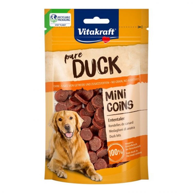 Doplnkové krmivo pre psov. Drobné dukátky. Okrúhle pamlsky z čistého kačacieho mäsa.