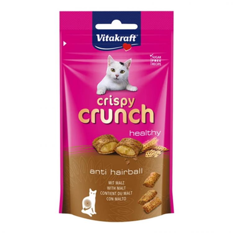 Doplnkové krmivo pre mačky. Chrumkavé vankúšiky s krémovou náplňou.Obsahuje slad, ktorý podporuje vylučovanie prehltnutých chlpov tráviacim traktom. Pôsobí proti tvorbe bezoárov.