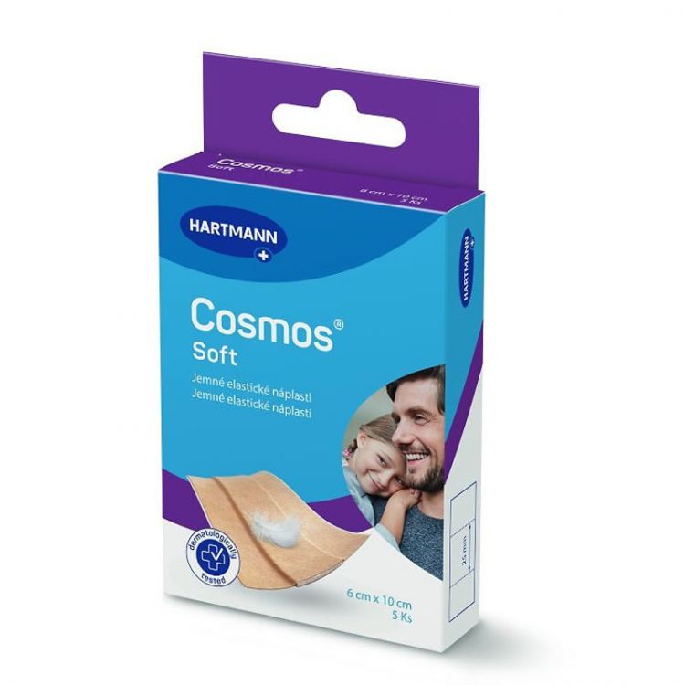 Náplasť Cosmos Jemná Jemná náplasť na viacúčelové použitie Jemná náplasť Cosmos je vyrobená z netkaného textilu a je určená na veľmi citlivú pokožku detí i dospelých. Hygienicky ošetrí všetky menšie poranenia. Vyrába sa v rôznych prevedeniach a veľkostiach. Jemná náplasť je k dispozícii delená aj nedelená, okrúhle náplasti na drobné poranenia na tvári alebo na prekrytie materských znamienok. • príjemné mäkké prevedenie, výborná priedušnosť • nezlepuje sa s ranou Špeciálna jemná náplasť bola vyrobená s prihliadnutím na potreby pacientov s citlivou pokožkou. Výhody jemných náplastí Cosmos • určené pre citlivú pokožku • priedušný materiál z netkaného textilu • delená – guľatá a opasky • obzvlášť priľnavá a mäkká Ako jemná náplasť Cosmos funguje Náplasť účinne kryje drobné zranenia na koži a chráni ich pred vniknutím nečistôt. Jemná štruktúra netkanej textílie a lepidlo sú šetrné k pokožke, ktorú nedráždia. Kedy používať Náplasti Cosmos sú vhodné na použitie pri menších typoch povrchových rán a pri odreninách. Okrúhle tvarované náplasti sú určené pre malé rany na tvári alebo na prekrytie materských znamienok. Spôsob použitia Po vybratí náplasti z obalu ju opatrne priložte na postihnuté miesto a pritlačte. Po odstránení náplasť zlikvidujte. Technické parametre • mäkké prevedenie z netkanej textílie • viac variant vrátane guľatej náplasti • spoľahlivo a hygienicky ošetrí aj menšie poranenia Dôležité upozornenie • Ide o zdravotnícku pomôcku. • Pred použitím si vždy starostlivo prečítajte informácie o prípravku a ak je súčasťou tak aj návod na použitie Odporúčanie použitia v kombinácii s inými produktmi Náplasti Cosmos sa používajú samostatne, možno je kombinácia s liečivými masťami.