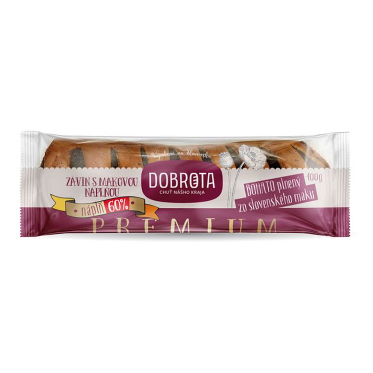 maková náplň 60 % [mak modrý 35 %, pitná voda, kryštálový cukor, slivkový lekvár (slivkový pretlak, sušené slivky, jablkový pretlak, glukózofruktózový sirup, cukor, modifikovaný škrob (E 1422), voda, kyselina (E330), aróma), strúhanka (pšeničná múka, voda pitná, droždie, rastlinný olej (repkový), soľ jedlá, zlepšujúci prípravok (ražná múka, jačmenná sladová múka, sušený glukózový sirup, emulgátor (E 471), enzýmy), pšeničný škrob), stabilizátor náplne (cukor, modifikovaný škrob (E1412, E1422, E1414), sušený vaječný bielok, soľ, aróma, kyselina (E330), farbivo (E160a)), konzervačná látka (E200)], pšeničná múka, pitná voda, kryštálový cukor, rastlinný olej repkový, vaječná melanž (vajcia, regulátor kyslosti (E 330)), pekárske droždie, pekársky prípravok (pšeničná múka, emulgátor (E471), aróma, farbivo (karotén), enzýmy, regulátor kyslosti (fosforečnan vápenatý), látka zlepšujúca múku (kyselina askorbová)), soľ, konzervačná látka (E200).