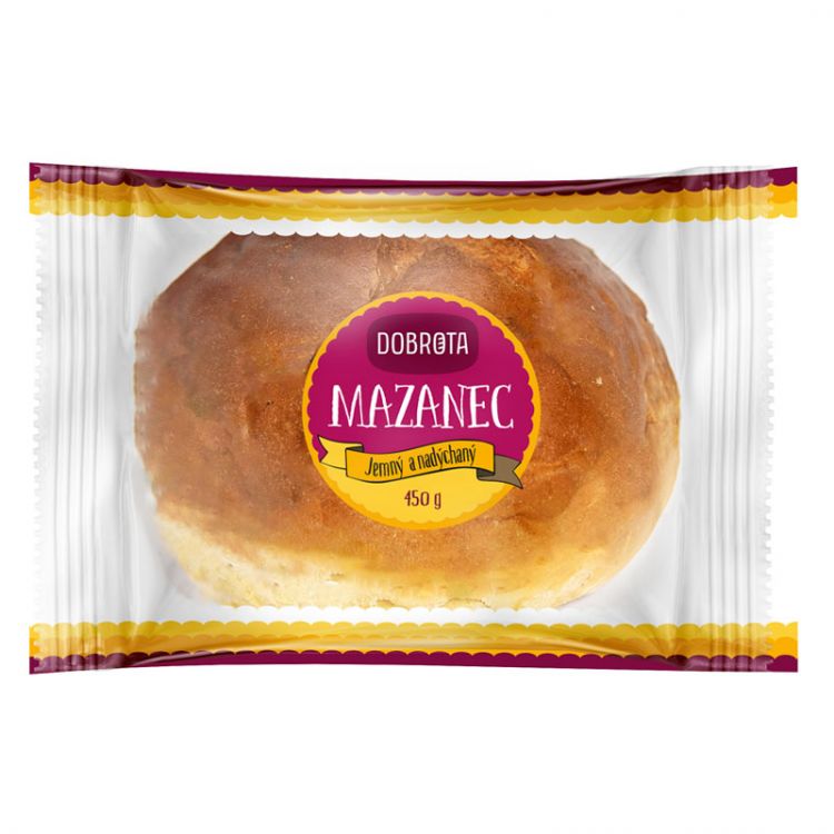 Pšeničná múka, voda, cukor, olej 5% (nízkoerukový repkový olej), pasterizovaná vaječná melanž, voda, konzervačná látka: E202, regulátor kyslosti: E330), pekársky prípravok (zvlhčovadlo sorbitol, sušená srvátka, pšeničná múka, emulgátor: E471, E481, sušený vaječný žĺtok, pšeničný lepok, sušený vaječný bielok, zemiakové vločky, aróma, sušený pšeničný kvas, dextróza, maltodextrín, farbivo: betakarotén, kyselina: kyselina citrónová, stabilizátor: E466, guarová guma, múku upravujúca látka: kyselina askorbová, enzýmy), droždie, srvátka sušená, vylepšujúci prípravok (voda, emulgátor : E471, arómy, stabilizátor:E420, propylénglykol:E1520, stereát sodný: E470a), soľ jedlá /chlorid sodný (min.99,0%), protihrudkovacia látka E536/, zlepšujúci prípravok (pšeničná múka, enzýmy-obsahujú pšenicu.), konzervačná látka: E200, mašľovací prípravok (pasterizovaná vaječná melanž)