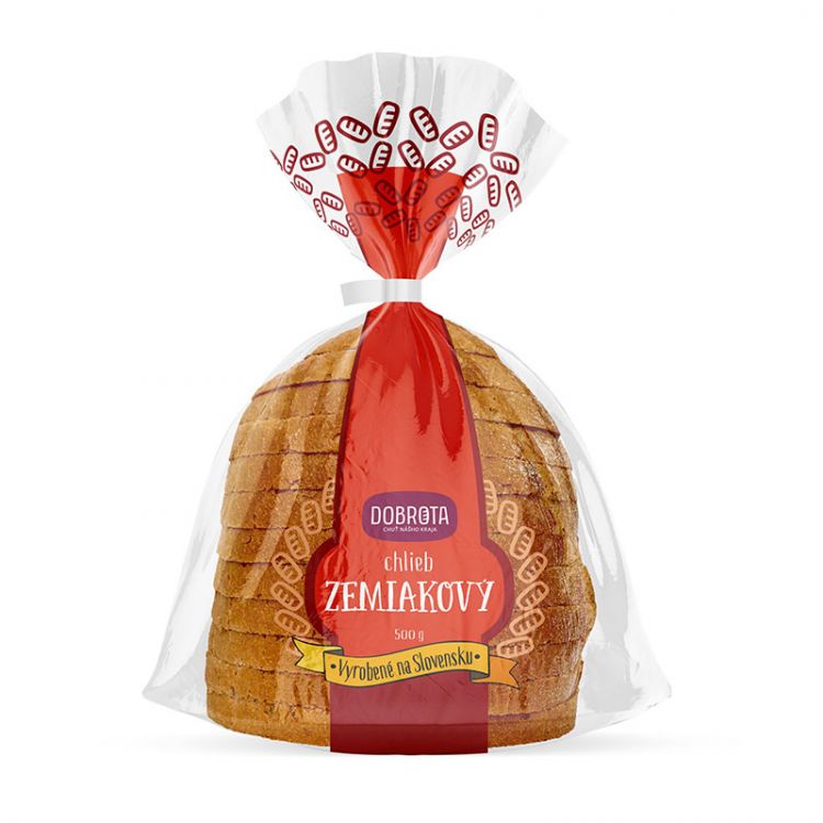 pšeničná múka 49%, pitná voda, ražná múka 11%, pekársky prípravok (ražný kvas (čiastočne pražená ražná múka, pitná voda, základ kvasu), kyselina (kyselina octová)), pekárske droždie, pekársky prípravok (stabilizátor (E170), pšeničná múka, emulgátor (E472e), pražený jačmenný slad, dextróza, múku upravujúca látka (E300),enzýmy), rasca, jedlá soľ, pšeničný škrob, zemiakové vločky 1% (konzumné zemiaky, voda)