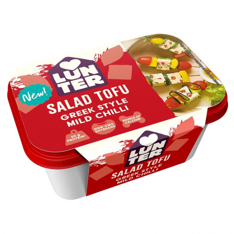 77 % tofu [88 % sójové bôby, voda, cesnak, 0,9 % čili, koagulačné činidlo (technologická pomocná látka/minerálna látka): chlorid vápenatý (vápnik)], 23 % slaný nálev (voda, soľ)