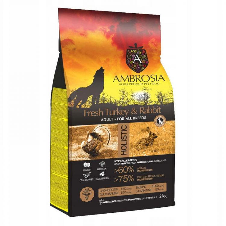 Zloženie: hydinové mäso 35% z toho čerstvé morčacie mäso bez kosti 15%, sušené morčacie mäso 20%), sušené zemiakové vločky, hydinový tuk 11%, zelený hrášok, rozdelený zelený hrášok, živočíšny tuk 9%, hydrolyzovaný hydinový proteín 10%, dehydrovaný králičí proteín 4%, ľanové semienka, sušená repa, sušená čakanka (prírodný zdroj FOS a inulínu), sušené pivovarské kvasnice ,lososový olej 0,5%, MOS (mannanové oligosacharidy)a betaglukany, minerály, sušená brokolica, sušený špenát, sušené rajčiny, sušené brusnice, sušené čučoriedky, glukosamin hydrochlorid (150mg/kg) chondroitin sulfát 150mg/kg, sušené bylinky (Yuka schidigera, Rosemarius sp., curcuma sp., citrus sp., Eugenia sp.) Analytické zložky: Hrubá bielkovina 30,0%, hrubý tuk 20%, Omega -3 mastné kyseliny 0,8%, Omega – 6 mastné kyseliny 2,7%, anorganické látky 7,5%, hrubá vláknina 3,0%, vlhkosť 9,0%. Ca (vápnik) 1,6%, P (fosfor) 1,0%. Prídavky v 1 kg : Vitamíny- Vitamín A (IU/kg):14.000 IU, Vitamín D3 (UI/kg)1.350, Vitamín E 400mg. Aminokyseliny : Taurín 1.000mg, L-karnitín 50mg. Stopové prvky: železo (síran železnatý II monohydrát:50,0mg, meď (síran mednatý II (pentahydrát)):10mg, zinok (síran zinočnatý II ( monohydrát) :60,0mg, Mangán (síran manganatý II (monohydrát)):5,0mg, jód (jodičnan vápenatý):1,5mg, selén (seleničitan sodný):0,2mg.
