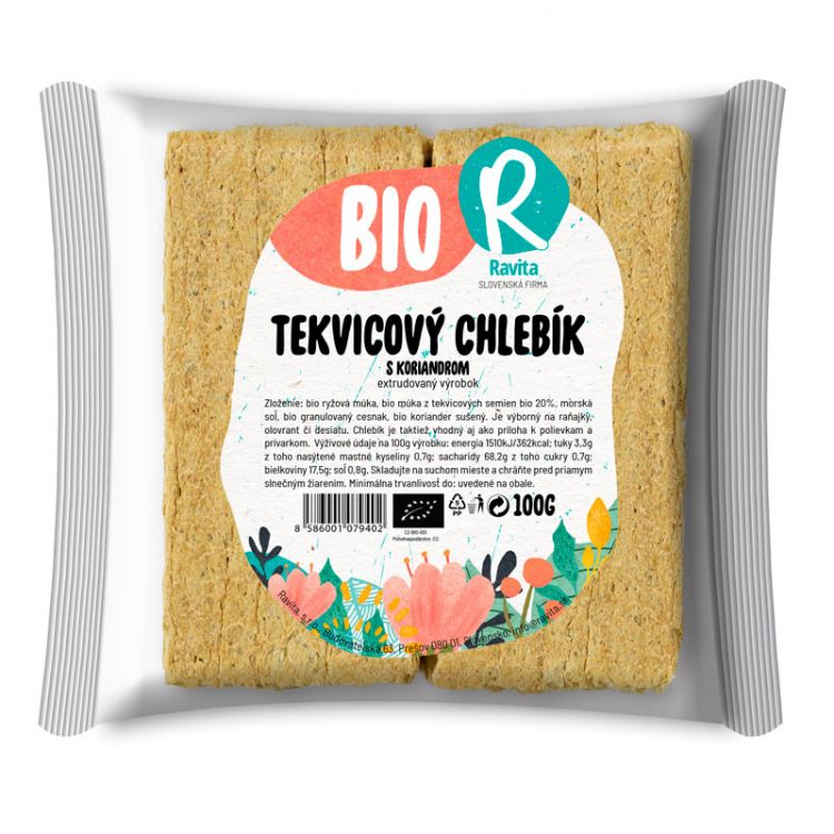 bio ryžová múka, bio múka z tekvicových semienok 20%, morská soľ, bio cesnak, bio koriander sušený 0,4%.