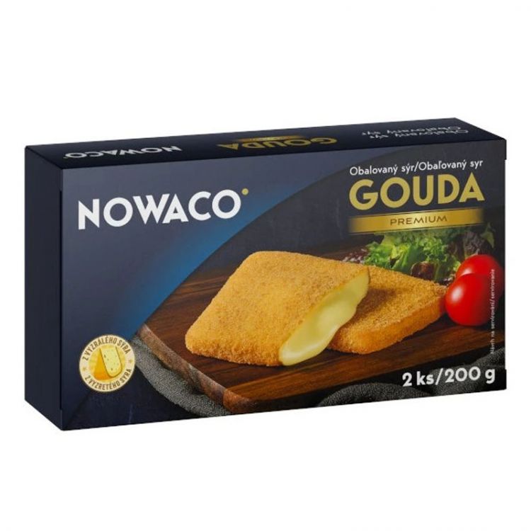 Hlbokozmrazený hotový výrobok. Obaľovaný syr Gouda predsmažený.