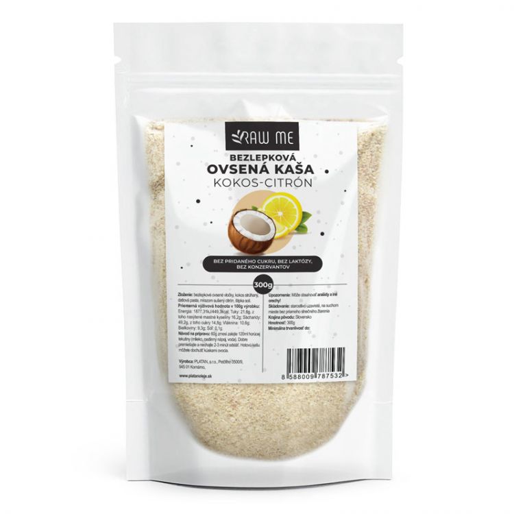 bezlepkové ovsené vločky, kokos strúhaný, datlová pasta, mrazom súšený citrón, štipka soli