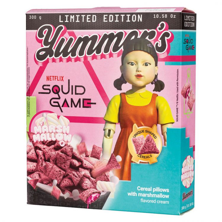 marshmallow krém (40%) (cukor, rastlinné tuky a oleje (bambucký, repkový), sušená srvátka (z mlieka), sušené odstredené mlieko, emulgátor (repkový lecitín), arómy, farbivá (červená repa, mrkva, reďkev, jablko múka (17,2%), celozrnná kukuričná múka (13,8%), kukuričná krupica (13,8%), cukor, pšeničné otruby (3,5%), ryžová múka (2,5%), kukuričný škrob (2,1%), maltodextrém farbivá (sušený koncentrát z červenej repy, prírodná košenila), jedlá soľ.
