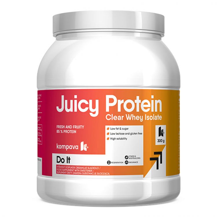 Juicy Protein s obsahom 85 % proteínu ponúka kvalitné bielkoviny vo forme osviežujúcej ovocnej limonády. Neobsahuje husté mliečne zložky, no i napriek tomu dodáva organizmu potrebné bielkoviny. Juicy Protein sa vyznačuje nie len osviežujúcou chuťou ale aj čírym vzhľadom. Popri konvenčných „mliečnych“ proteínoch, akými sú napríklad klasická vanilka alebo čokoláda, môžu teraz športovci siahnuť po ľahkom nápoji, ktorý má zároveň vysoké hladiny leucínu a BCAA na podporu udržiavania svalovej hmoty a lepšiu regeneráciu. Táto špičková formulácia poskytuje rovnako výživné hodnoty ako tradičné mliečne proteínové šejky.