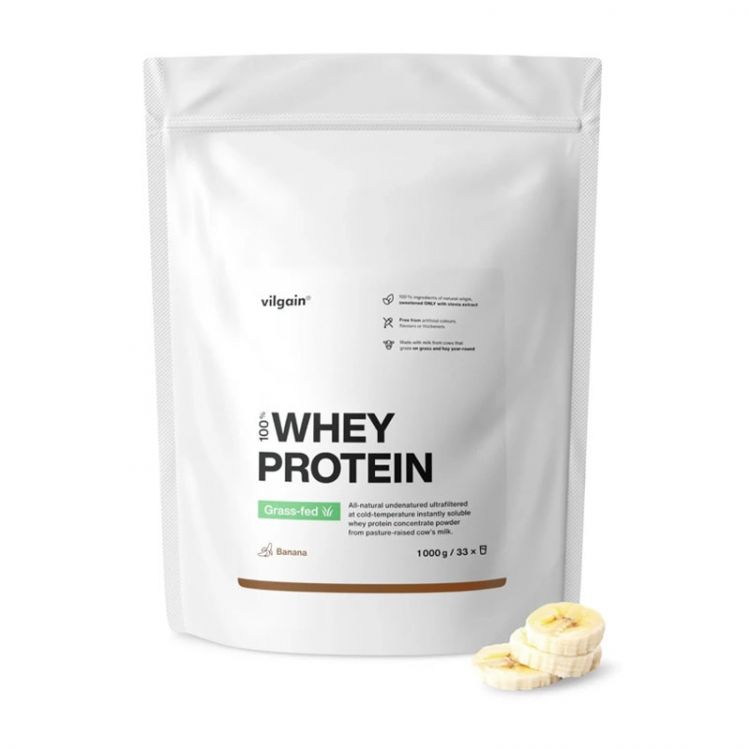 Ultrafiltrovaný srvátkový proteínový koncentrát ( mlieko, emulgátor: slnečnicový lecitín) 97 %, mrazom sušený banán prášok (3%), prírodná aróma, sladidlo: steviol‑glykozidy.