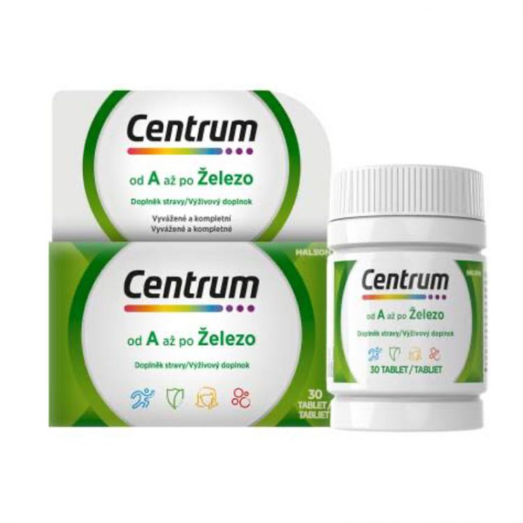 Centrum od A po Železo je vysokokvalitný komplexný multivitamín pre dospelých, ktorý ponúka jedinečné zloženie s obsahom 13 vitamínov a 11 minerálov, ktoré pracujú spoločne na podpore vášho zdravia každý deň. S jedinou tabletou denne pokryjete 100% vašich denných potrieb vitamínov* a vy tak nemusíte siahať po viacerých výživových doplnkoch. Centrum od A po železo neobsahuje lepok, laktózu, cukor a umelé sladidlá.