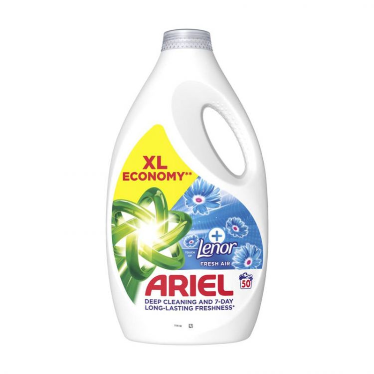 Ariel, odporúčaný spoločnosťami Whirlpool, Beko, Electrolux a Candy, predstavuje tekutý prací prostriedok Ariel + Touch of Lenor Fresh Air. Zabezpečuje hĺbkové čistenie a 7 dní trvajúcu sviežosť (pri uskladnení bielizne). Tekutý prací prostriedok Ariel + Touch of Lenor Fresh Air poskytuje neprekonateľné výsledky dokonca aj pri nižších teplotách. Na škvrny môžete najprv použiť zelený uzáver tekutého pracieho prostriedku Ariel + Touch of Lenor Fresh Air a až potom vložiť oblečenie do práčky. Na dosiahnutie najlepších výsledkov vložte odmerku naplnenú pracím prostriedkom do bubna svojej práčky. Z ekologických dôvodov nie sú odmerky súčasťou každého balenia, môžete si ich však zadarmo objednať na webovej stránke ariel.info.