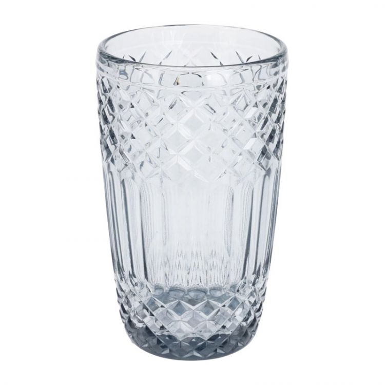 Brúsený sklenený pohár 380 ml v sivej farbe pre štýlové servírovanie nápojov.