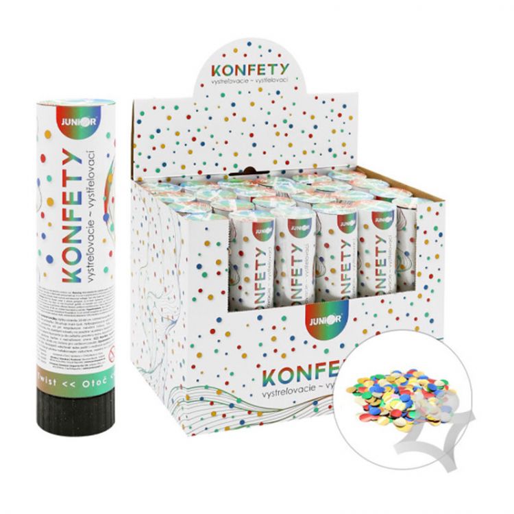 Vystreľovacie konfety - tuba 20 cm, farebné metalické krúžky