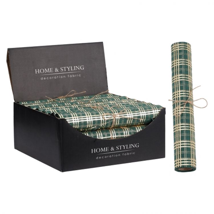 Organza látková 28x270 cm - zelená, vzor káro zlatej farby