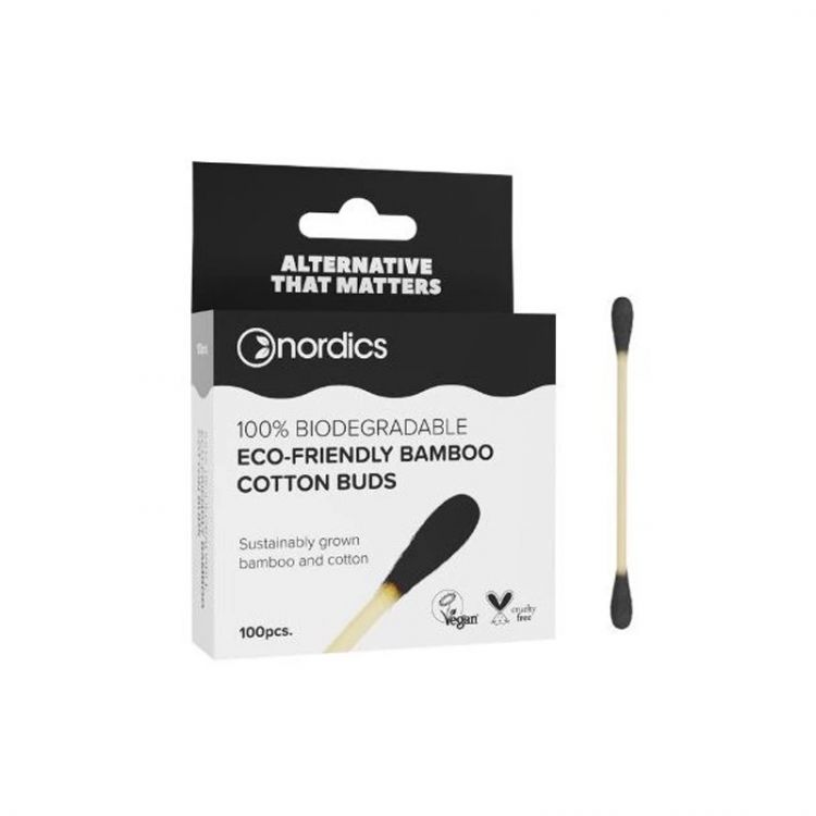 NORDICS Bambusové vatové tyčinky do uší čierne 100ks