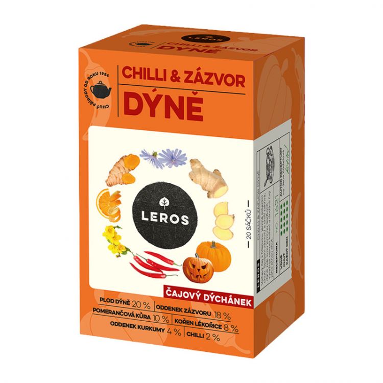 Plod tekvice (20 %), odnož zázvoru (18 %), pomarančová kôra (10 %), koreň sladkého drievka (8 %), kvet ibišku bieleho (8 %), pražený koreň čakanky (7 %), kvet divozelu (5 %), prírodná aróma (5 %), odnož kurkumy (4 %), kardamóm (4 %), kvet bazy čiernej (4 %), kôra škorice (2 %), kvet ibišku červeného (2 %), chilli (2 %), klinček (1 %).