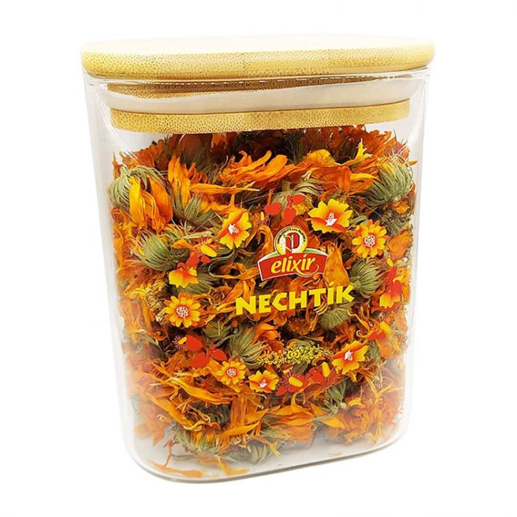 Nechtík lekársky – sypaný čaj v sklenenej dóze je prírodný čaj z kvetov nechtíka, známy svojimi hojivými a upokojujúcimi účinkami. Tento čaj podporuje regeneráciu organizmu, pomáha pri drobných zápaloch a podráždeniach a je výborným doplnkom starostlivosti o telo aj dušu. Sypaný čaj je zabalený v elegantnej borosilikátovej dóze, ktorá zabezpečuje dlhodobú čerstvosť a ochranu všetkých aktívnych látok v bylinkách a ovocí.