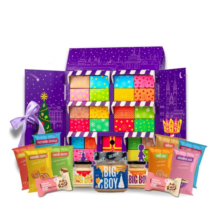 Big Brownie - lieskový krém s kešu a bielou čokoládou 55 g Výživové údaje na 100 g: Energetická hodnota: 2408 kJ / 578 kcal Tuky: 39 g - z toho nasýtené mastné kyseliny: 11 g Sacharidy: 38 g - z toho cukry: 29 g Vláknina: 3,2 g Bielkoviny: 16 g Soľ: 0,14 g Zloženie: Mleté jadrá lieskových orechov 25 %, mleté jadrá kešu orechov 25 %, biela čokoláda 20 % (cukor, kakaové maslo, sušené mlieko, sušená srvátka, emulgátor: sójový lecitín, vanilkový extrakt), sušené odstredené mlieko, ghí (bezvodý maslový tuk), vanilková aróma. Môže obsahovať stopy arašidov a ostatných orechov. Skladovanie: Skladuj na suchom mieste a nevystavuj priamemu slnečnému žiareniu. Chráň pred teplom. Po otvorení spotrebuj do dvoch mesiacov. Použitie: Ideálne na ochutenie sladkých pokrmov alebo na priamu konzumáciu. Prípadná separácia oleja na povrchu nie je na závadu, ide o prirodzený jav. Pred konzumáciou premiešaj. Raňajková kaša s príchuťou jablkového štrúdľa 25 g Zmes obilnín na prípravu kaše s jablkami a škoricou. Výživové údaje na 100 g: Energetická hodnota: 1624 kJ / 385 kcal Tuky: 8,3 g - z toho nasýtené mastné kyseliny: 0,8 g Sacharidy: 66 g - z toho cukry: 23 g Bielkoviny: 8,3 g Vláknina: 5,8 g Soľ: 0 g Zloženie: Instantnáryžová kaša (extrudovaná ryža 100 %) 31 %, bezlepkové ovsené vločky 30 %, kokosový cukor, pražené drvené lieskové orechy 10 %, sušené jablká 10 %, škorica 1 %. Skladovanie: Chráňte pred teplom a priamym slnečným žiarením. Po otvorení spotrebujte do dvoch týždňov. Použitie: Jednu porciu (20 g) nasypte do misky a zalejte asi 50 ml teplej vody, mlieka alebo rastlinnej náhrady mlieka. Premiešajte a nechajte 1 minútu odstáť. Creamy core chocolate brownie 22,5 g Proteínová tyčinka s príchuťou brownie, so sladidlami. Výživové údaje na 100 g Energetická hodnota: 1751 kJ / 420 kcal Tuky: 21 g – z toho nasýtené mastné kyseliny: 10 g Sacharidy: 35 g – z toho cukry: 3,8 g Vláknina: 1,2 g Bielkoviny: 33 g Soľ: 0,53 g Zloženie: mliečny proteín (vápenatá soľ kazeínu, izolát srvátkovej bielkoviny), sladidlá (maltitol, sukralóza), hydrolyzovaný kolagén, sušené plnotučné mlieko, kakaové maslo, zvlhčovadlo (glycerol), voda, maslo zo semien maslovníka (shea), kakaová hmota, ryžová múka, repkový olej, kakaový prášok so zníženým obsahom tuku, sušená srvátka, prírodná vanilková aróma, prírodná aróma, emulgátor (lecitíny (sója)), soľ. Alergény: obsahuje mlieko a sóju. Môže obsahovať arašidy, orechy, lepok a vajcia. Skladovanie a ďalšie pokyny: Skladujte na suchom mieste, chráňte pred teplom. Pri nadmernej konzumácii môže mať preháňavé účinky. Použitie: Určené na priamu konzumáciu. Jahodové plátky lyofilizované 7 g Lyofilizácia = sušenie mrazom Na rozdiel od sušenia teplom si ovocie pri sušení mrazom zachováva všetky živiny vrátane vitamínov a minerálov. Lyopotraviny sú ľahké, trvanlivé a chrumkavé. Vhodné ako prísada do kaší, granol alebo ako zdravá desiata na cesty. Upozorňujeme, že v balení môže byť až 10 % ovocného prachu, ktorý vzniká pri preprave produktu. Výživové údaje na 100 g: Energetická hodnota: 1248 kJ / 298 kcal Tuky: 3,7 g – z toho nasýtené mastné kyseliny: 0,3 g Sacharidy: 50,9 g – z toho cukry: 50,6 g Vláknina: 15,1 g Bielkoviny: 7,6 g Soľ: 0 g Zloženie: Plátky jahôd zbavené vody vymrazením (krajina pôvodu: Nemecko, Egypt, Turecko, Čína) Skladovanie: Skladuj na suchom mieste a nevystavuj priamemu slnečnému žiareniu. Chráň pred teplom. Použitie: Určené na priamu konzumáciu. Big Rafael – jemný mandľovo-kokosový krém 55 g Výživové údaje na 100 g: Energetická hodnota: 2396 kJ / 576 kcal Tuky: 39 g – z toho nasýtené mastné kyseliny: 17 g Sacharidy: 40 g – z toho cukry: 33 g Vláknina: 6,5 g Bielkoviny: 13 g Soľ: 0,10 g Zloženie: Mleté jadrá blanšírovaných mandlí 40 %, trstinový cukor – práškový, mletý strúhaný kokos 20 %, sušené odstredené mlieko 10 %, ghí (bezvodý maslový tuk). Môže obsahovať stopy arašidov a iných orechov. Skladovanie: Skladuj na suchom mieste a nevystavuj priamemu slnečnému žiareniu. Chráň pred teplom. Po otvorení spotrebuj do dvoch mesiacov. Použitie: Ideálne na ochutenie sladkých jedál alebo na priamu konzumáciu. Prípadná separácia oleja na povrchu nie je závadou – ide o prirodzený jav. Pred konzumáciou premiešaj. Mandle v bielej čokoláde s jogurtovou príchuťou a ružovými vločkami 75 g Výživové údaje na 100 g: Energetická hodnota: 2280 kJ / 545 kcal Tuky: 35,2 g – z toho nasýtené mastné kyseliny: 12,8 g Sacharidy: 46,1 g – z toho cukry: 43,6 g Vláknina: 3,3 g Bielkoviny: 9,6 g Soľ: 0,19 g Zloženie: biela čokoláda 65,9 % (cukor, kakaové maslo, sušené plnotučné mlieko, sušená srvátka, prírodná vanilková aróma, emulgátor: sójový lecitín), mandle 30 % (mandle, slnečnicový olej), glukózový sirup, jogurtová aróma, jogurtový prášok, dextrín, leštiace zložky: arabská guma, šelak, kokosový olej, repkový olej. Alergény: obsahuje mlieko, srvátku, sóju a mandle. Môže obsahovať stopy ostatných škrupinových plodov. Skladovanie: Produkty by mali byť skladované v uzavretom obale, na tmavom mieste pri teplote 15–18 °C a maximálnej vlhkosti 60 %. Použitie: Určené na priamu konzumáciu. Tento produkt nie je vhodný pre deti vo veku 0–3 roky. 7. Perníková kaša vegan 25 g Zmes obilnín na prípravu kaše s príchuťou perníka. Výživové údaje na 100 g: Energetická hodnota: 1917 kJ / 458 kcal Tuky: 20 g – z toho nasýtené mastné kyseliny: 12 g Sacharidy: 57 g – z toho cukry: 26 g Vláknina: 5,8 g Bielkoviny: 9,4 g Soľ: 0,4 g Zloženie: Strúhaná extrudovanáryžová múka 30 %, bezlepkové ovsené vločky, sušený kokosový nápoj, kokosový cukor, pražené drvené lieskové orec