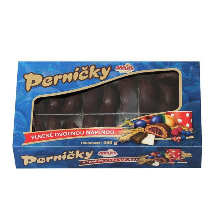 Zloženie : ražná múka, pšeničná múka, glukózo-fruktózový sirup, ovocná náplň 20% (jablkový pretlak, cukor, glukózo-fruktózový sirup, pretlak z arónie, jablčná vláknina, modifikovaný škrob , regulátor kyslosti: E330; aróma, konzervačná látka:E202), cukrárska poleva tmavá 20% (cukor, úplne rafinovaný a úplne hydrogenovaný palmojadrový tuk, kakaový prášok so zníženým množstvom tuku, emulgátor : sójový lecitín; aróma), margarín stolový [rastlinné tuky (palmové), repkový olej, pitná voda, jedlá soľ (0,25 %), emulgátory: mono- a diglyceridy mastných kyselín, slnečnicový lecitín; konzervačná látka: kyselina sorbová; regulátor kyslosti: kyselina citrónová], vaječná melanž (slepačie celé vajcia 99,9%, regulátor kyslosti: E330), kypriace látky: uhličitany sodné, uhličitany amónne; perníkové korenie, emulgátor: sójový lecitín; konzervačná látka : kyselina sorbová , aróma medová, farbivo: obyčajný karamel.