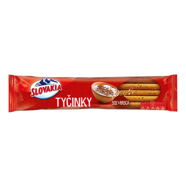 PŠENIČNA múka, slnečnicový olej, jedlá soľ (3,1%), droždie, zemiakový škrob, pšeničná sladová múka,rasca (1,2%), cukor, sušená sladká paprika, korenie, regulátor kyslosti (hydroxid sodný). Môže obsahovať obilniny obsahujúce LEPOK (pšenica), MLIEKO a ARAŠIDY XXX Na 30g, Energia 517 kJ (122 kcal), Tuky 2,6g (z toho nasýtené mastné kyseliny 0,3g), Sacharidy 21g ( z toho cukry 0,9g), Vláknina 1,2g, Bielkoviny 3,6g, Soľ 0,93g.