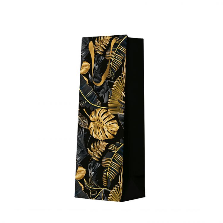 Darčeková taška na fľašu - Premium Gold Leaves