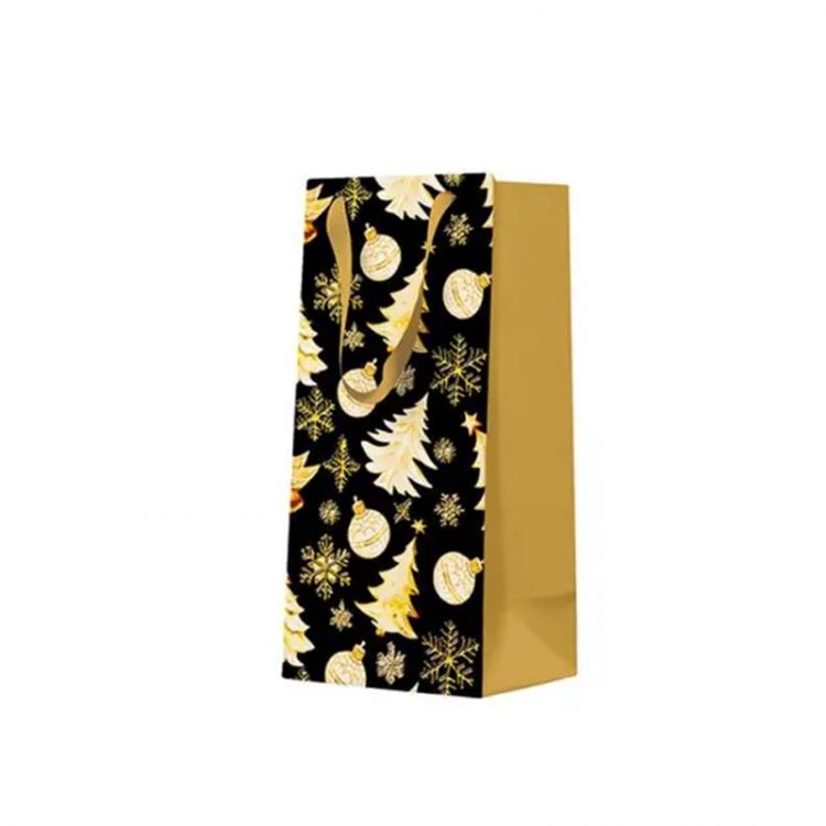 Darčeková taška vianočná 10x7x22 cm Golden Christmas Trees black