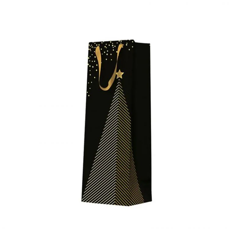 Darčeková taška vianočná 10x7x22 cm Golden Christmas Trees black