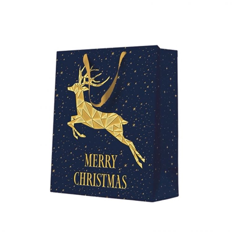 Darčeková taška vianočná 12x10x37 cm Gold Deer  PREMIUM