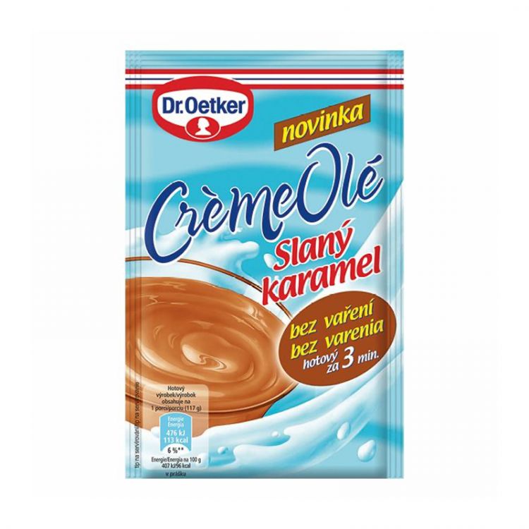 cukor, modifikovaný škrob, 2,6% karamelový prášok (58% karamel, maltodextrín), 1,6% soľ, prírodná aróma, zahusťovadlo (karboxymetylcelulóza). Může obsahovať (MLIEKO, MÚKA Z VLČIEHO BÔBU, OBILNINY obsahujúce LEPOK).