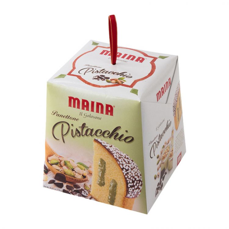 PŠENIČNÁ múka, PISTÁCIOVÝ krém 16% (glukózový sirup, cukor, voda, PISTÁCIOVÁ pasta 8%, slnečnicový olej s vysokým obsahom kyseliny olejovej, sušené odstredené MLIEKO, VAJEČNÝ žĺtok, alkohol, arómy, zahusťovadlo: pektín; konzervačná látka: sorban draselný; mrkvový, tekvicový a spirulinový koncentrát), cukor, MASLO, VAJEČNÝ žĺtok, kvások (PŠENIČNÁ múka, voda), pasta s kandizovanej pomarančovej kôry (pomarančová kôra, glukózovo-fruktózový sirup, cukor), sirup z invertného cukru, emulgátor: mono- a diglyceridy mastných kyselín; plnotučné pasterizované MLIEKO, jedlá soľ, arómy. Môže obsahovať iné orechy, sóju a horčicu. Zloženie cukrovej posýpky (2%): cukor, PŠENIČNÝ škrob, arómy.