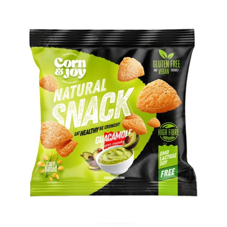 SK: Kukuričný snack s príchuťou avokádovej salsy - guacamole. Extrudovaný výrobok.Bezgluténový.