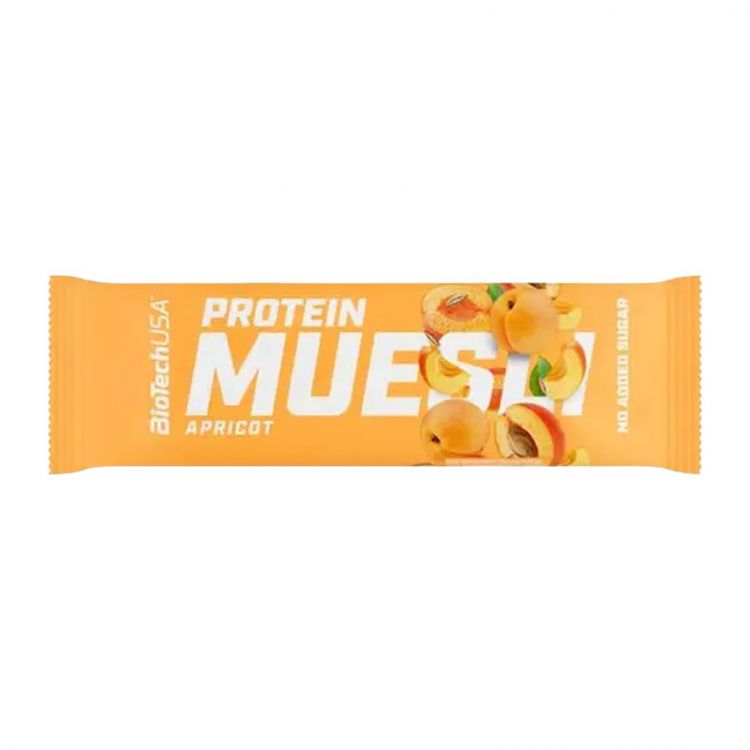 Protein MuesliBar – Marhuľová müsli tyčinka s vitamíny a železom. Obsahuje sladidlo. Zdroj bielkovín. Zdroj vlákniny. ZLOŽENIE:ovsené vločky 26%, sladidlo (maltity), kúsky sušených marhúľ 15% (marhuľa, antioxidant: oxid siričitý), extrudované obilniny 15% [múčna zmes (pšenica, ryža, kukurica), soľ],