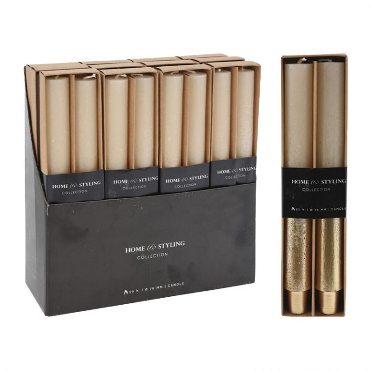 Večerné sviečky 25 cm, krémová / metalická farba (2 ks)