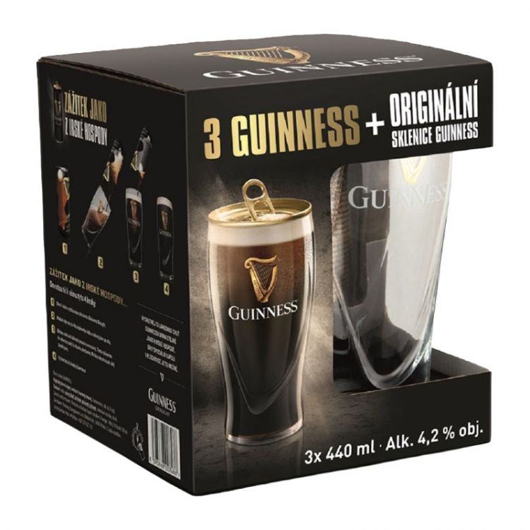 GUINNESS pivo 3 x 440 ml vratná plechovka + pohár 1 ks