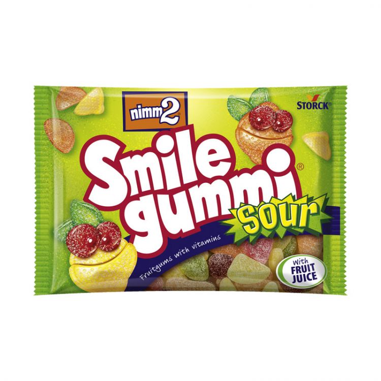 cukor, glukózový sirup, ovocná šťava z koncentrátu (5 %)(hrozno, baza čierna), želatína, kyseliny: (kyselina jablčná, kyselina citrónová, kyselina mliečna), modifikovaný šrob, zvlhčovadlo: sorbitolový sirup, regulátor kyslosti: jablčnan sodný, arómy, niacín, vitamín E, kyselina pantoténová, rastlinné koncentráty (čierna mrkva, spirulína), vitamín B6, extrakt kurkumy, biotín, vitamín B12. Môže tiež obsahovať stopy mlieka.