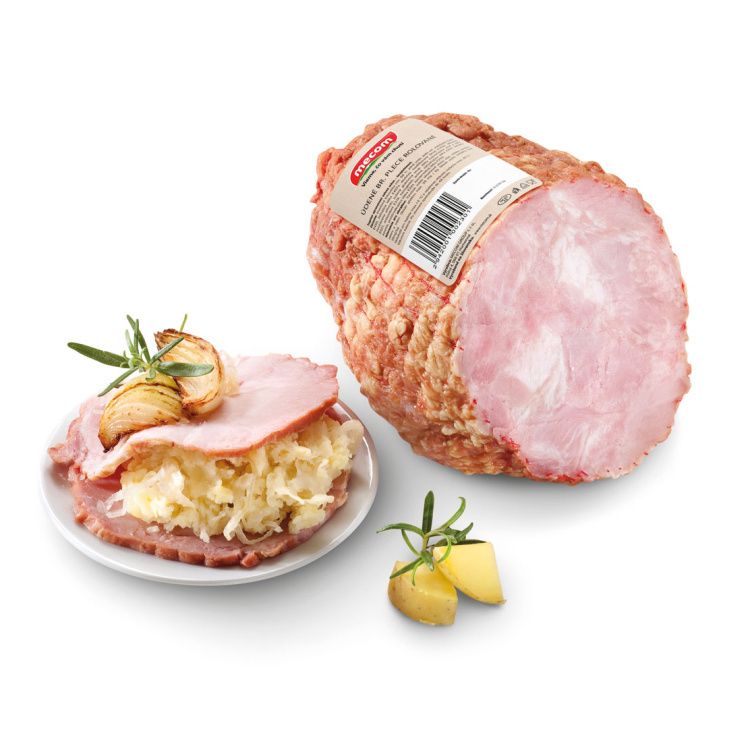 bravčové plece bez kosti 70%, pitná voda, škrob, živočíšna bielkovina bravčová, stabilizátory (difosforečnany, trifosforečnany), jedlá soľ, regulátor kyslosti (citráty sodné), dextróza, vláknina, zahusťovadlá (karagénan, guma tara), antioxidant (erythorban sodný), želírujúca látka (chlorid draselný), aróma, extrakty korenín, konzervačná látka (dusitan sodný).