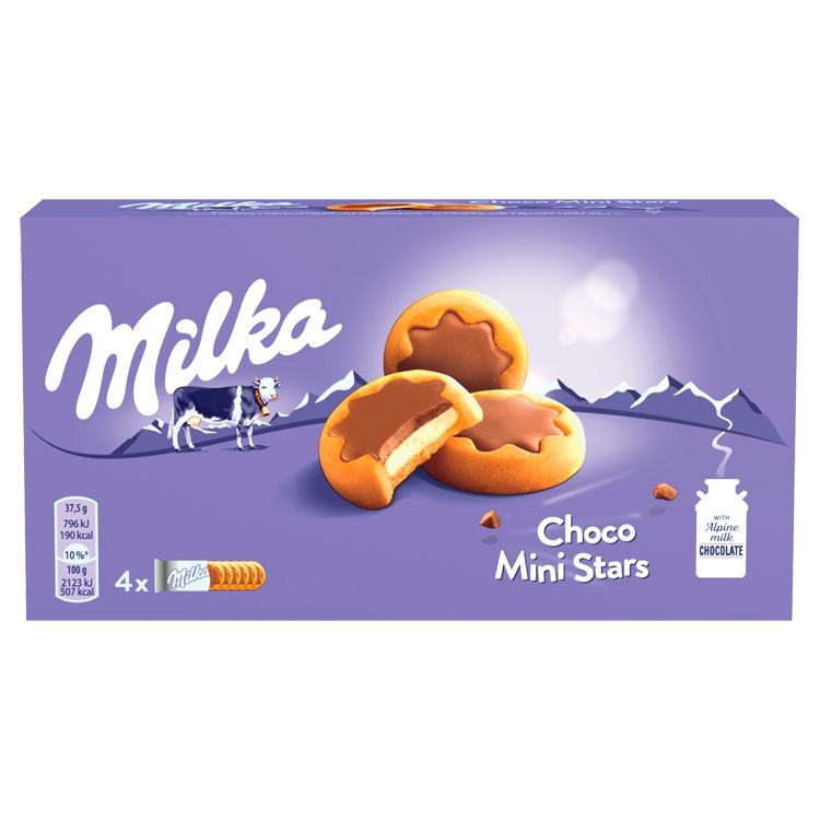 Pšeničná múka, Mliečna čokoláda z alpského mlieka 23,2 % [cukor, kakaové maslo, kakaová hmota, sušené odtučnené mlieko, sušená srvátka (z mlieka), mliečny tuk, emulgátory (sójový lecitín, E476), aróma], Cukor, Palmový tuk, Repkový olej, Sušená srvátka (z mlieka), Sušené plnotučné mlieko 1,7 %, Glukózový sirup, Laktóza (z mlieka), Jedlá soľ, Kypriace látky (hydrogenuhličitan amónny, hydrogenuhličitan sodný), Emulgátor (sójový lecitín), Arómy, Kyselina (kyselina citrónová)