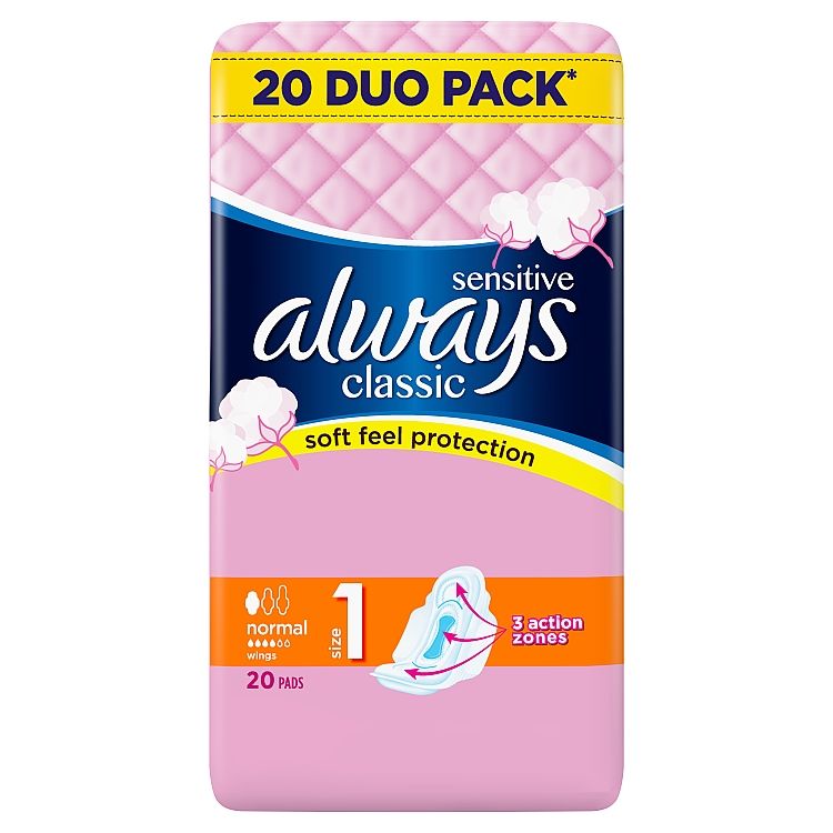 Always Classic Sensitive Normal Hygienické Vložky S Krídelkami 20 ks