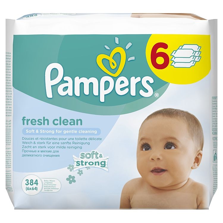 Pampers Fresh Clean Čistiace Obrúsky 6 x 64 kusov