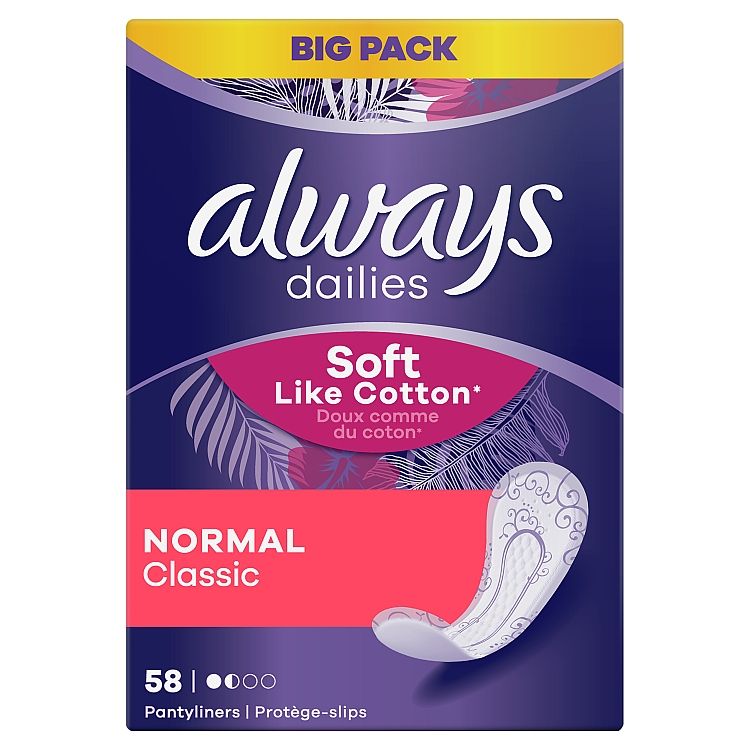 Always Dailies Normal Classic Intímky Jemné Ako Bavlna 58 ks