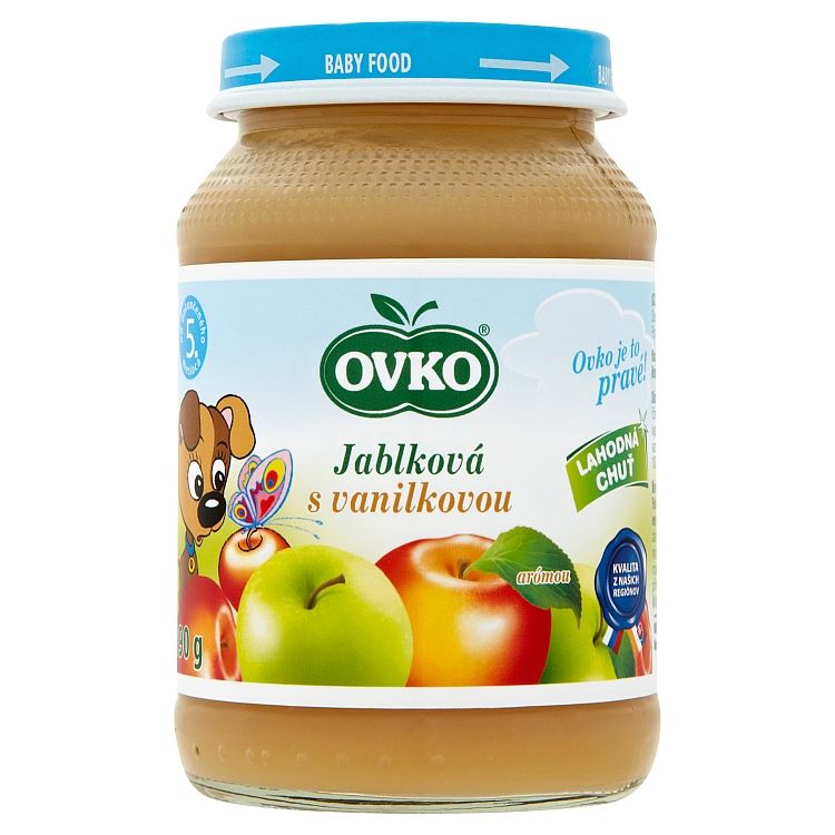 Jablkový pretlak 80% hm., Voda, Cukor, Kukuričný škrob, Bio celozrnná ryžová múka, Regulátor kyslosti: kyselina citrónová, Vitamín C, Aróma etylvanilín, Môže obsahovať glutén (<20mg/kg)