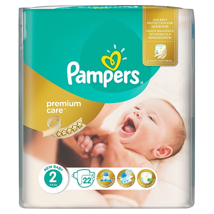 Pampers Premium Care Detské Jednorazové Plienky, Veľkosť 2 (Mini) 3 - 6 kg, 22 Kusov