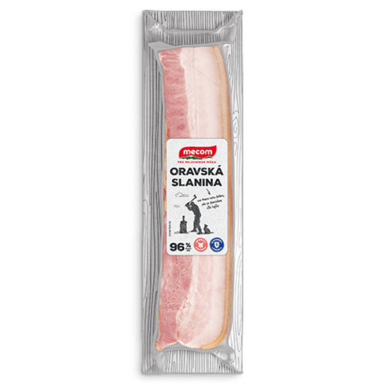 bravčový bok bez kosti s kožou 96%, pitná voda, jedlá soľ, zahusťovadlá E407, E415, stabilizátor E451, dextróza, regulátor kyslosti E500, antioxidant E301, konzervačná látka E250, dymová aróma. Výživové údaje na 100g výrobku: Energia 1605 kJ/388 kcal, Tuky 35g, z toho nasýtené mastné kyseliny 9,3g, Sacharidy 4,0g, z toho cukry <0,01g, Bielkoviny 14g, Soľ 1,6g. Spotrebujte do: uvedené na etikete. Skladujte pri teplote 0 až +4°C. Po otvorení spotrebujte do 48 hodín. Krajina pôvodu základnej zložky (bravčové mäso): EÚ.